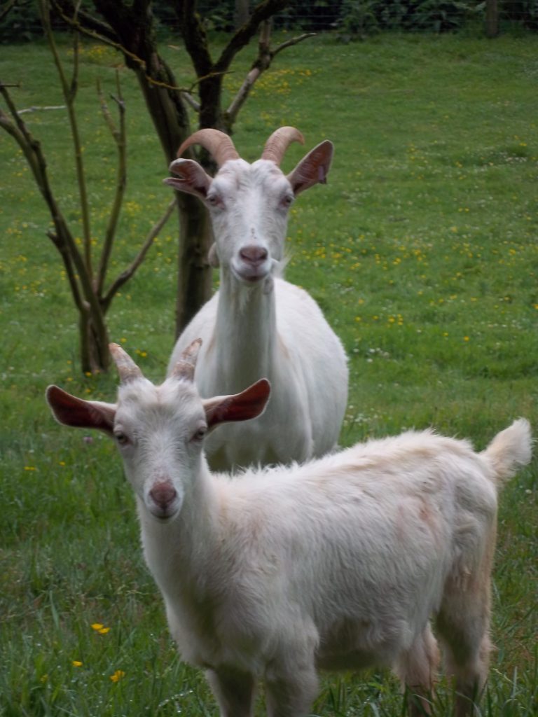 The goats, Amerley a Golden Guernsey and Lisa a Saanan cross, provide milk, halloumi, kefir and yoghurt for the house. The goats have their own shed but are often found grazing near the edge of the wood.
