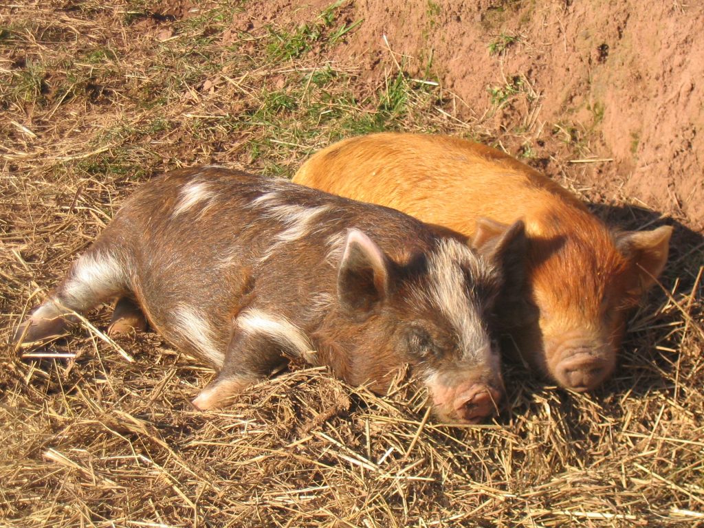 We have two delightful Kune Kune pigs, Ruby and Bilbo, who are now an old pair, peacefully living out their lives in the wood. They keep the weeds down, ensure that nothing goes to waste and are always ready for a scritch and a scratch.