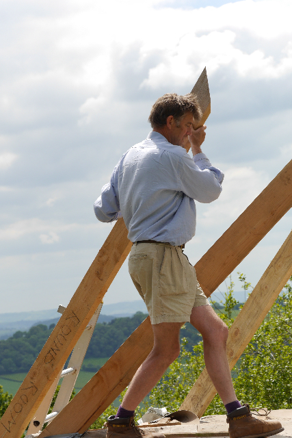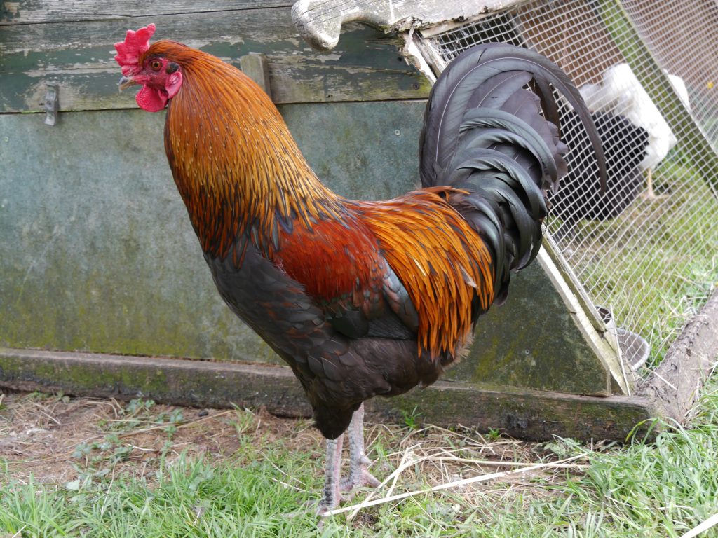 The chickens are truly free range. They can be found scratching around all over the place in the day, returning to their cleft chestnut geodesic dome at night, safe from the fox! They are a jolly assortment of Blue Cheshires, Leghorns, Rhode Rocks, Redcos and Brown Nicks.