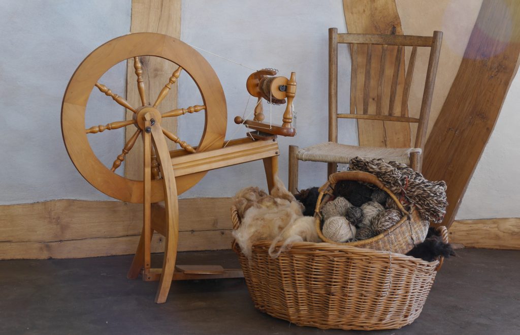 We keep a small flock of Shetland sheep which provide the finest wool of any British breed, we spin and use this wool throughout the year.